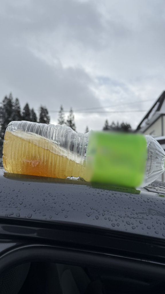 土日の二日間、現場車にペットボトルを忘れていったら、