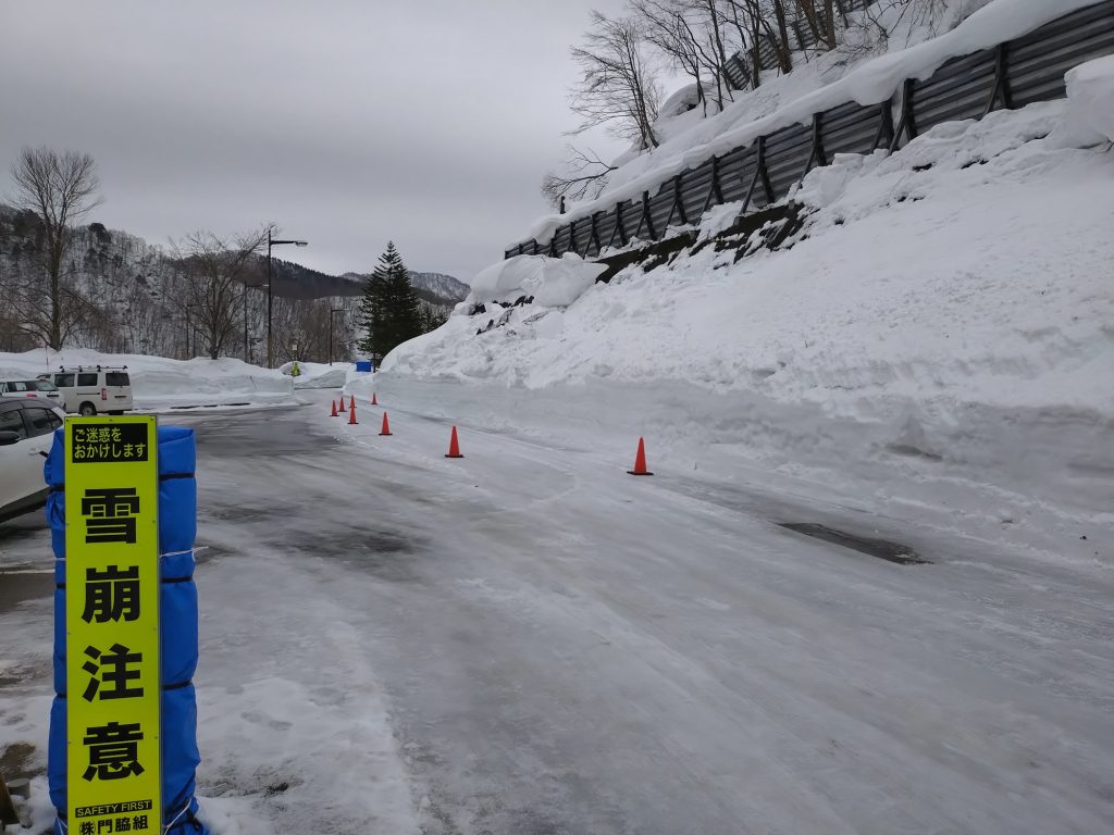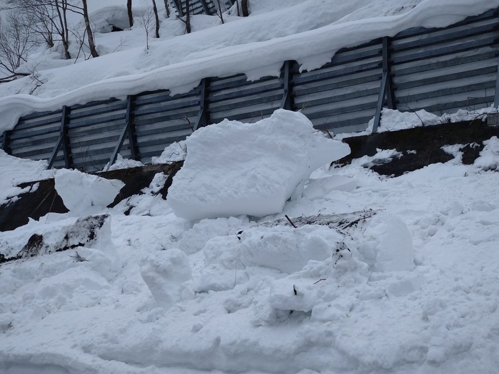 また、玉川ダム管理所付近では雪崩が発生し、雪塊の一部が道路付近まで到達している状況を確認しました。