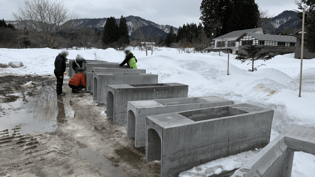 断面がU字型で、住宅街や農道など、いろいろな場所で使われています。